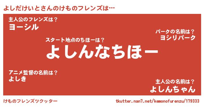 | ポケモン風あだ名 | 『ヨシゴンZ』『ヨシダダネ』 |