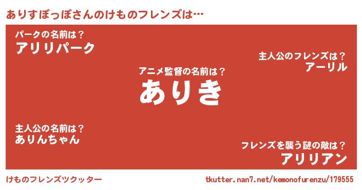 | ヘコむあだ名 | 『ありっちょ』『ありすぽっぽ(小並感)』 |
