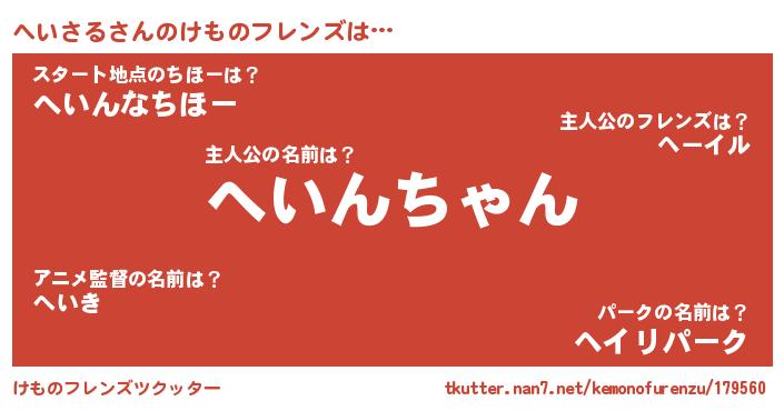 | 意味不明あだ名 | 『ペロリンへいさる』『自称へいさる』 |