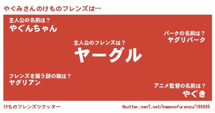 | ピコ太郎風あだ名 | 『ピコヤ郎』『ヤコ史郎』『ヤグ二郎』 |
