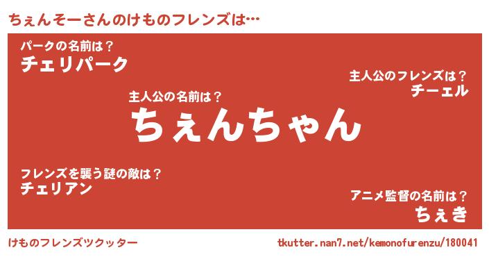 | 意味不明あだ名 | 『ペロリンちぇんそー』『自称ちぇんそー』 |