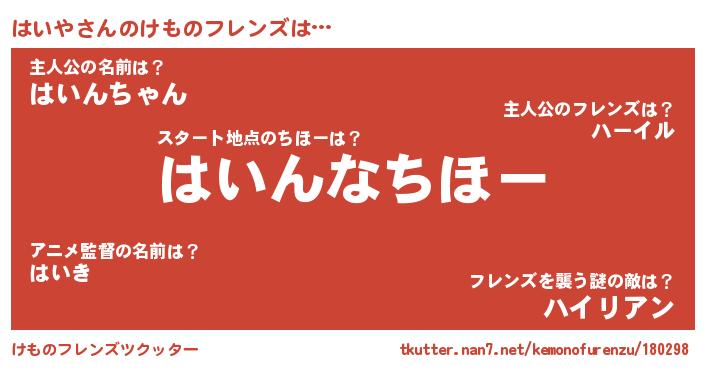 | 2回繰り返すあだ名 | 『ははいい』『はいはい』『ぼそぼそ』 |