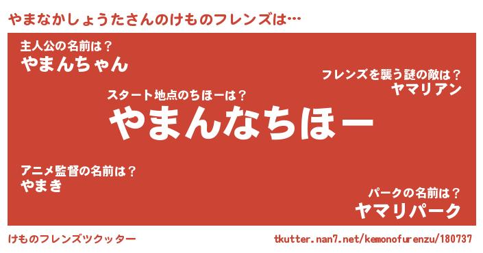 | ピコ太郎風あだ名 | 『ピヤ史郎』『ヤコ一郎』『ヤヤ太郎』 |