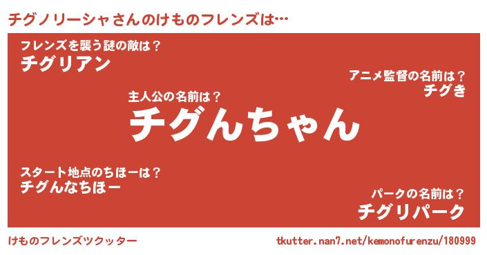 | ファンタジー風あだ名 | 『チグフェル』『ヴァルチグーナ』 |