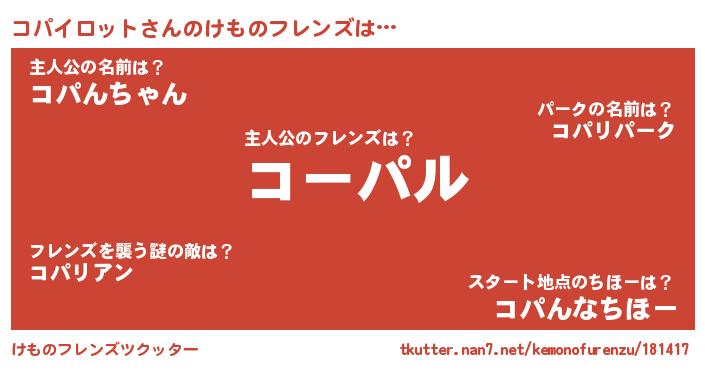 | ポケモン風あだ名 | 『ゼニコパ』『コパゴンZ』『コーパイ』 |