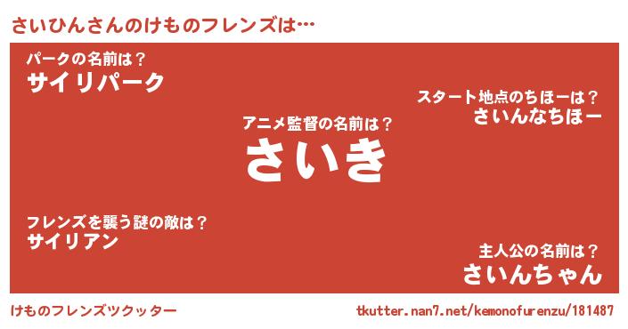 | 2回繰り返すあだ名 | 『ぬらぬら』『もろもろ』『さいさい』 |