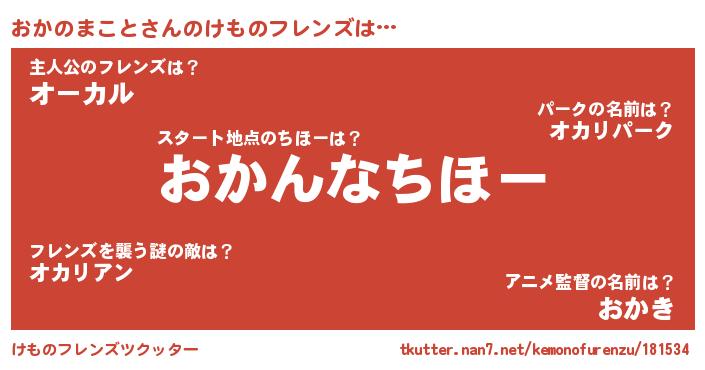 | 男性向けラノベタイトル風あだ名 | 『うちの娘の為ならば、俺はもしかしたらおかのまことも倒せるかもしれない。』 |