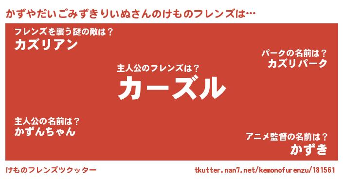 | 意味不明あだ名 | 『永久保存かずやだいごみずきりいぬ』 |