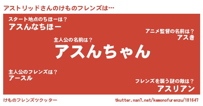 | 胡散臭い通販商品みたいなあだ名 | 『必ず成功する霊験あらたかなお札…その名も「アストリッド」』 |