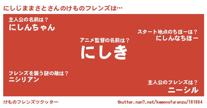 | 萌えアニメ | 主人公(にしじままさと)のあだ名『 にし殿』 |