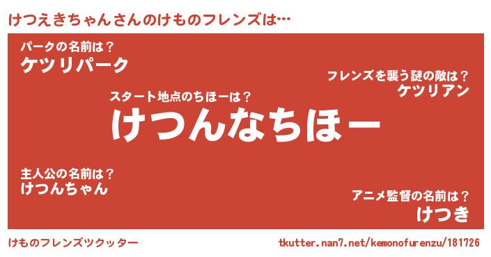 | 男性向けラノベタイトル風あだ名 | 『やはりけつえきちゃんの青春ラブコメはまちがっている 』 |