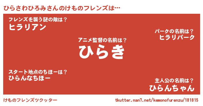 | ポケモン風あだ名 | 『ヒラゴンZ』『ヒヒラサワヒロミ』 |