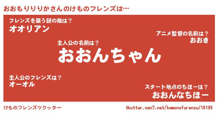 | 2回繰り返すあだ名 | 『らんらん』『そわそわ』『おおおお』 |