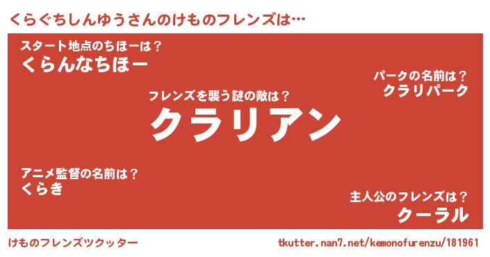 | 男性向けラノベタイトル風あだ名 | 『クラグチシンユウスレイヤー』 |