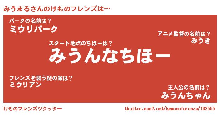 | 2回繰り返すあだ名 | 『わーわー』『みみうう』『もこもこ』 |