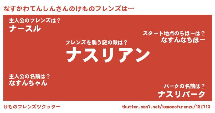 | ヘコむあだ名 | 『なすかわてんしん(震え声)』『なまこ酢』 |