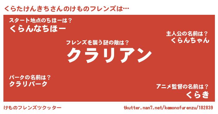 | 男性向けラノベタイトル風あだ名 | 『おまえをオタクにしてやるから、俺をくらたけんきちにしてくれ! 』 |