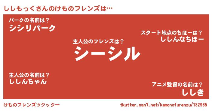 | 意味不明あだ名 | 『永久保存ししもっく』『自称ししもっく』 |
