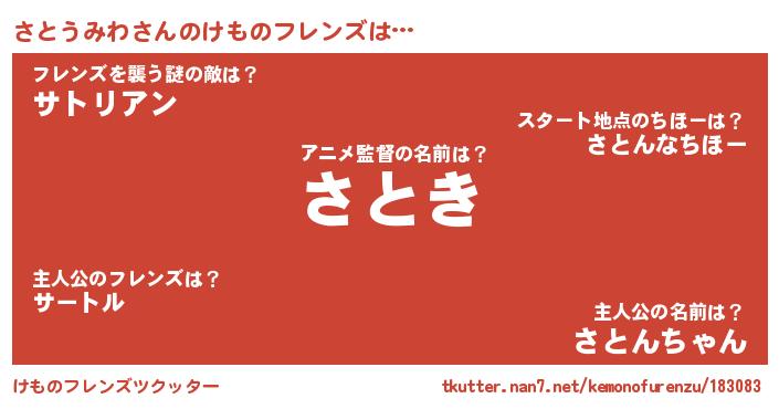 | ヒーロー風カッコイイあだ名 | 『幻影騎士サト』『慈愛の使者さとうみわ』 |