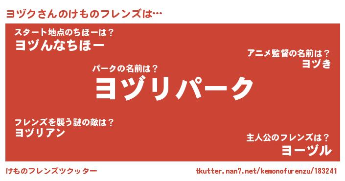 | ファンタジー風あだ名 | 『ゼヨヅトゥ』『エターナルヨヅクー』 |