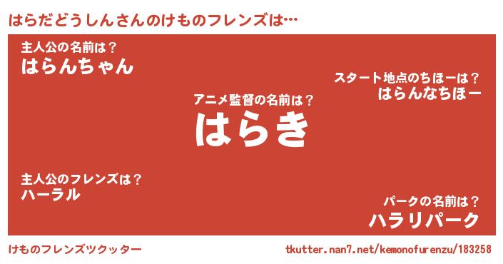 | 2回繰り返すあだ名 | 『なあなあ』『はらはら』『ははらら』 |