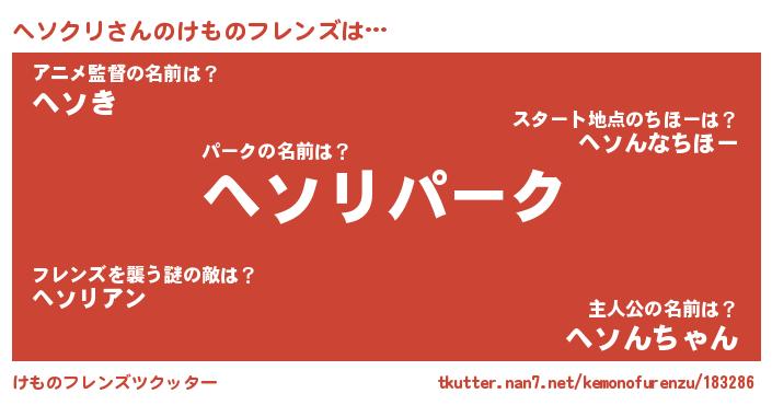 | 意味不明あだ名 | 『自称ヘソクリ』『ペロリンヘソクリ』 |