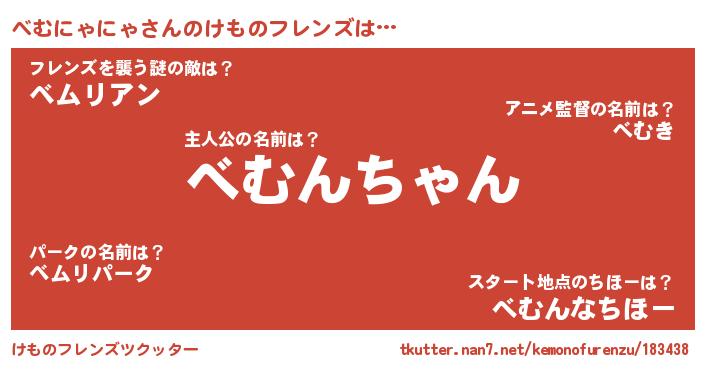 | 意味不明あだ名 | 『住所不定無職べむにゃにゃ(79歳)』 |