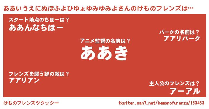 | 萌えアニメ | 主人公(ああいうえにぬほふよひゆょゆみゆみよ)のあだ名『 ああああきゅん』 |