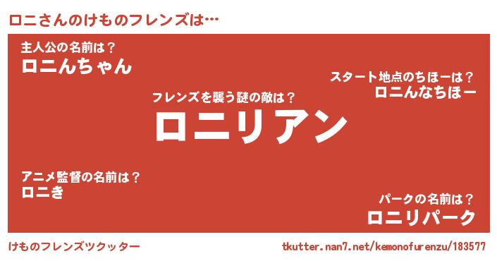 | ヘコむあだ名 | 『ロニにー』『なまこ酢』『ロニっぺ』 |
