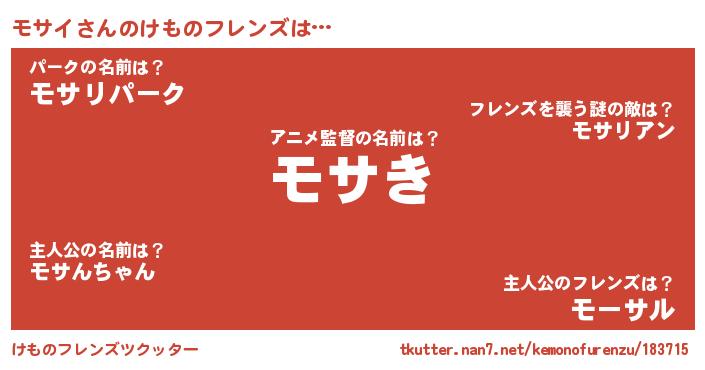 | 意味不明あだ名 | 『とにかく怪しいモサイ』『自称モサイ』 |