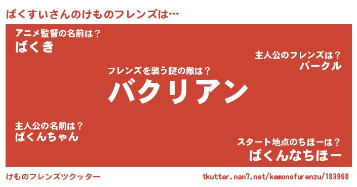 | ポケモン風あだ名 | 『バックウザ』『ヒバクスイ』 |