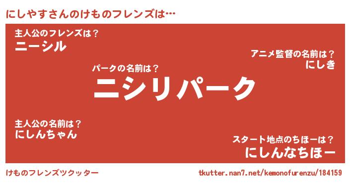 | 意味不明あだ名 | 『自称にしやす』『つくし科にしやす属』 |