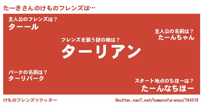 | ヒーロー風カッコイイあだ名 | 『仮面ターダー』『慈愛の使者たーき』 |