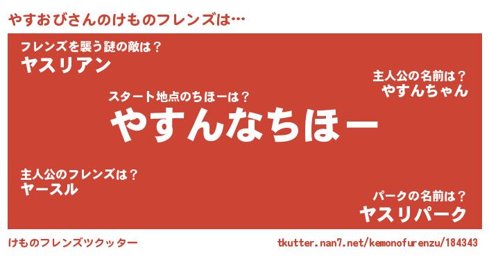 | ポケモン風あだ名 | 『ヤスゴンZ』『ヤスオダネ』 |