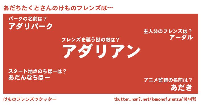| ヘコむあだ名 | 『あだっぺ』『あだちたくと(小並感)』 |