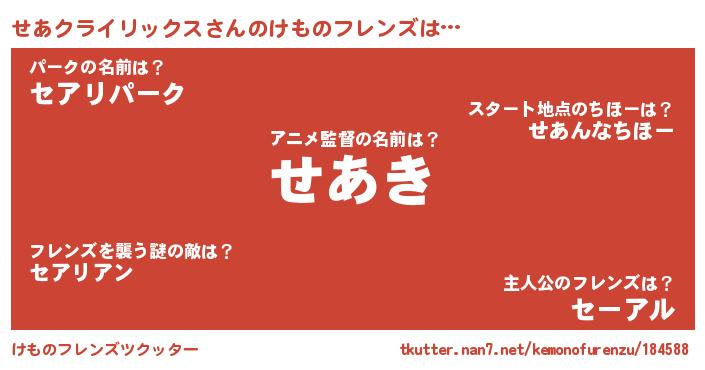 | ヘコむあだ名 | 『せあ太郎』『せあクライリックス(小並感)』 |