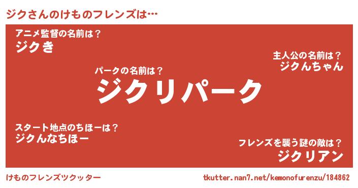 | 意味不明あだ名 | 『自称ジク』『とにかく怪しいジク』 |