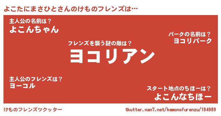 | ヒーロー風カッコイイあだ名 | 『友情の使者よこたにまさひと』 |