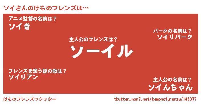 | ヘコむあだ名 | 『ソイ(苦笑)』『ソイを』『ソイにー』 |