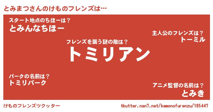 | 男性向けラノベタイトル風あだ名 | 『おまえをオタクにしてやるから、俺をとみまつにしてくれ! 』 |