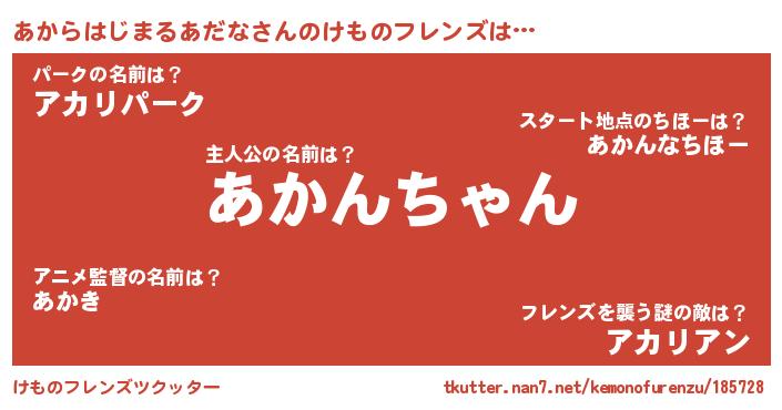 | 料理風あだ名 | 『あからはじまるあだなのカルパッチョ風』 |