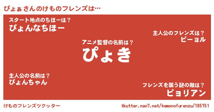 | 男性向けラノベタイトル風あだ名 | 『この素晴らしい世界にぴょぁを!』 |