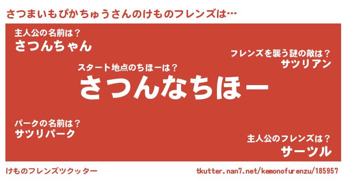 | 意味不明あだ名 | 『住所不定無職さつまいもぴかちゅう(12歳)』 |