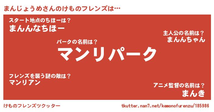 | 男性向けラノベタイトル風あだ名 | 『まんじょうめに滅ぼされるだけの簡単なお仕事です』 |