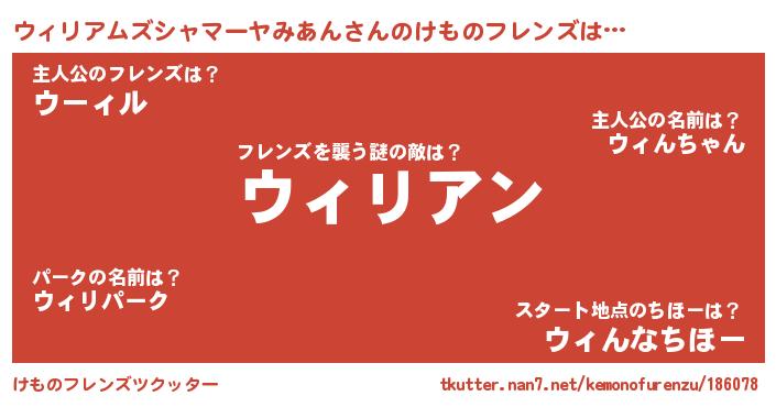 | 男性向けラノベタイトル風あだ名 | 『ノーゲーム・ノーウィリアムズシャマーヤミアン』 |