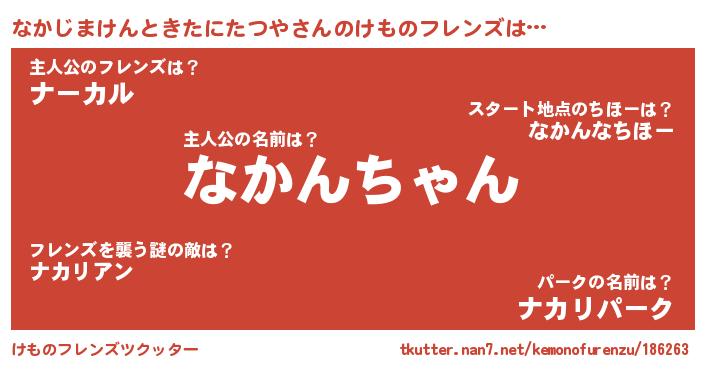 | ヒーロー風カッコイイあだ名 | 『スーパーナカジマケントキタニタツヤ』 |
