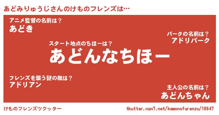 | 意味不明あだ名 | 『あどみりゅうじフォーエバー』 |