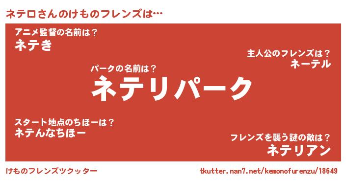 | ヒーロー風カッコイイあだ名 | 『サイバー戦士ネテロ』『暗黒騎士ネテ』 |