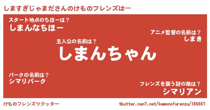| 2回繰り返すあだ名 | 『しましま』『ししまま』『ぷりぷり』 |