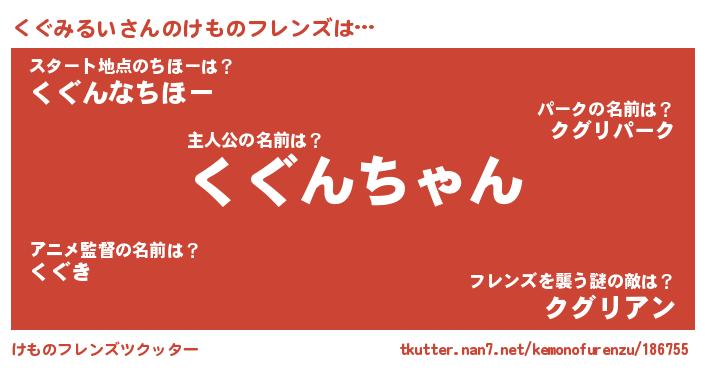 | ヒーロー風カッコイイあだ名 | 『スーパークグミルイ』『幻影騎士クグ』 |